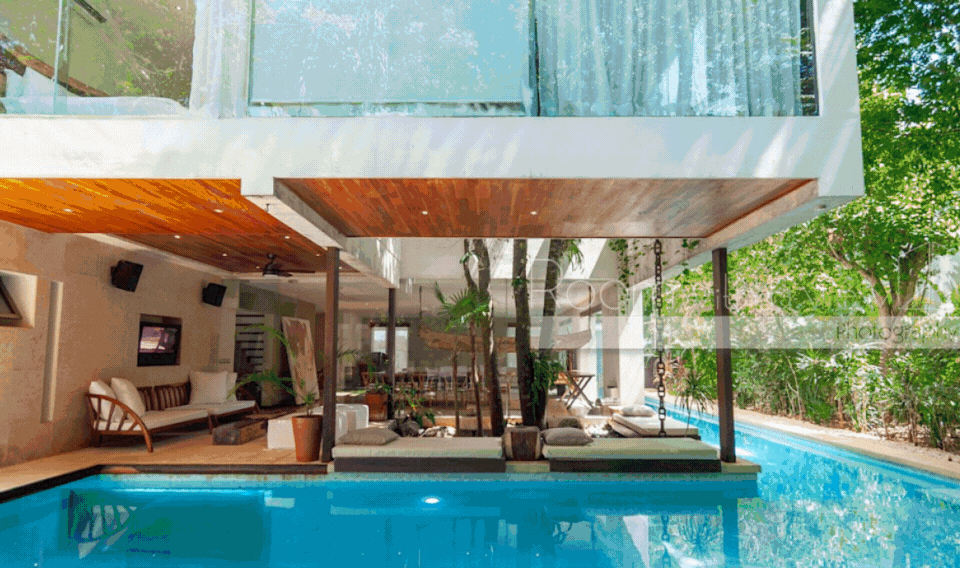 If you're looking for a home that feels more like a private resort, Villa Toh is one you need to see. Tucked into the tropical foliage in the Playacar gated community, this elegant 6-bedroom, 6.5-bath estate blends striking architectural details with warm, welcoming design and resort-style amenities—ideal as a private residence, vacation retreat, or high-end rental investment.