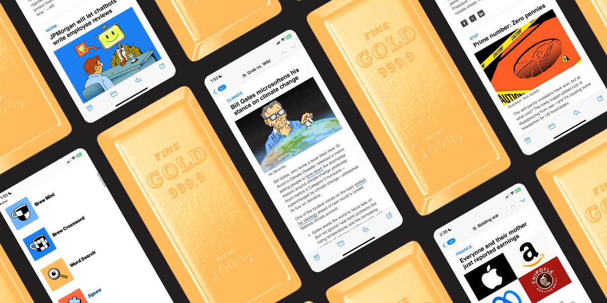Thatâs what Morning Brew delivers every day â stories as valuable as your time. Each edition breaks down the most relevant business, finance, and world headlines into sharp, engaging insights youâll actually understand â and feel confident talking about.