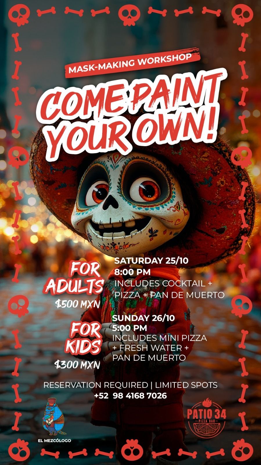 Get creative this Día de Muertos season with a Mask-Making Workshop at Patio 34, a fun, hands-on event where you can design and paint your very own mask while enjoying great food, drinks, and company. All you need is your imagination—and maybe your appetite.